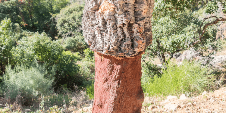 Tout commence par l’écorçage du chêne-liège. Contrairement à la fabrication des bouchons qui exige les plus belles planches (le « liège femelle »), le liège destiné à l’expansion provient majoritairement du liège mâle (première récolte) ou des restes de découpe.