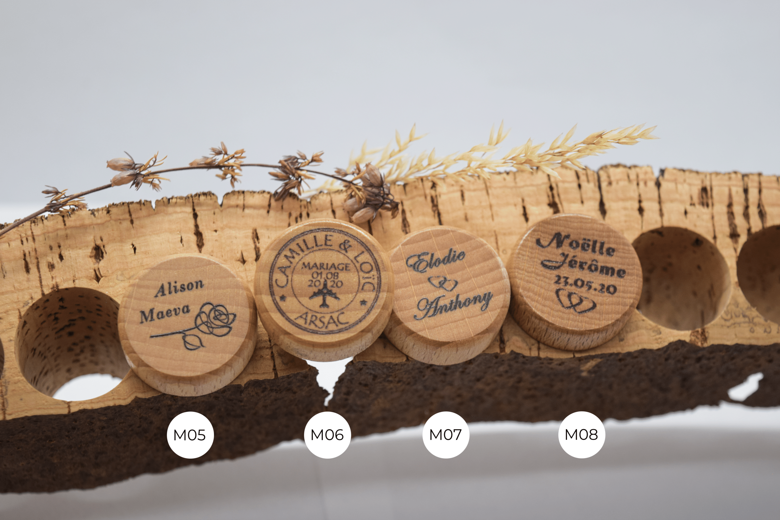 Offrez un souvenir original de votre mariage à vos invités : un bouchon personnalisé à utiliser au quotidien pour reboucher les bouteilles d’huiles, d’alcools, vins ou spiritueux…