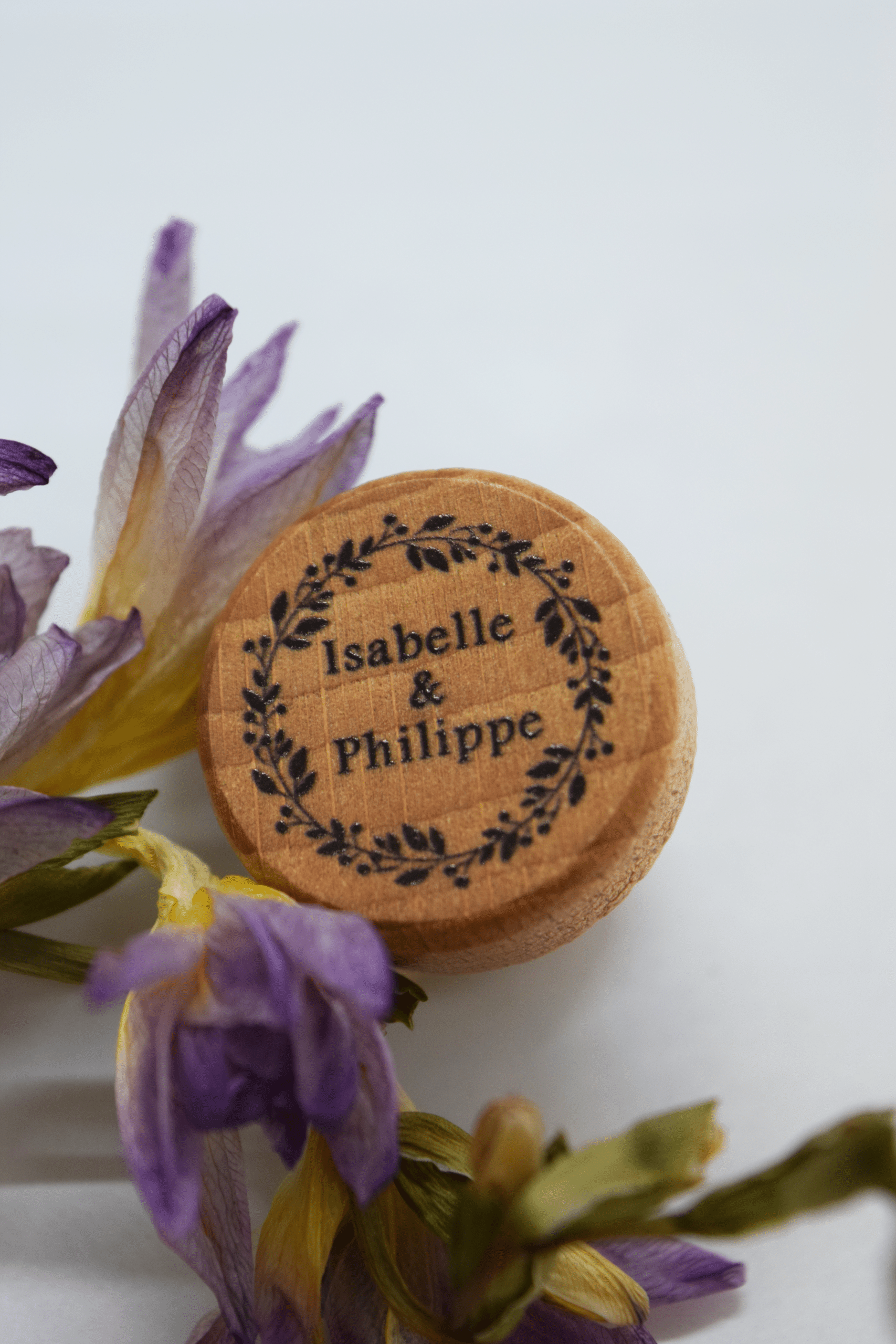 MARIAGE Bouchons personnalisés Tête Bois Verni (Col Ø 17,5 mm)