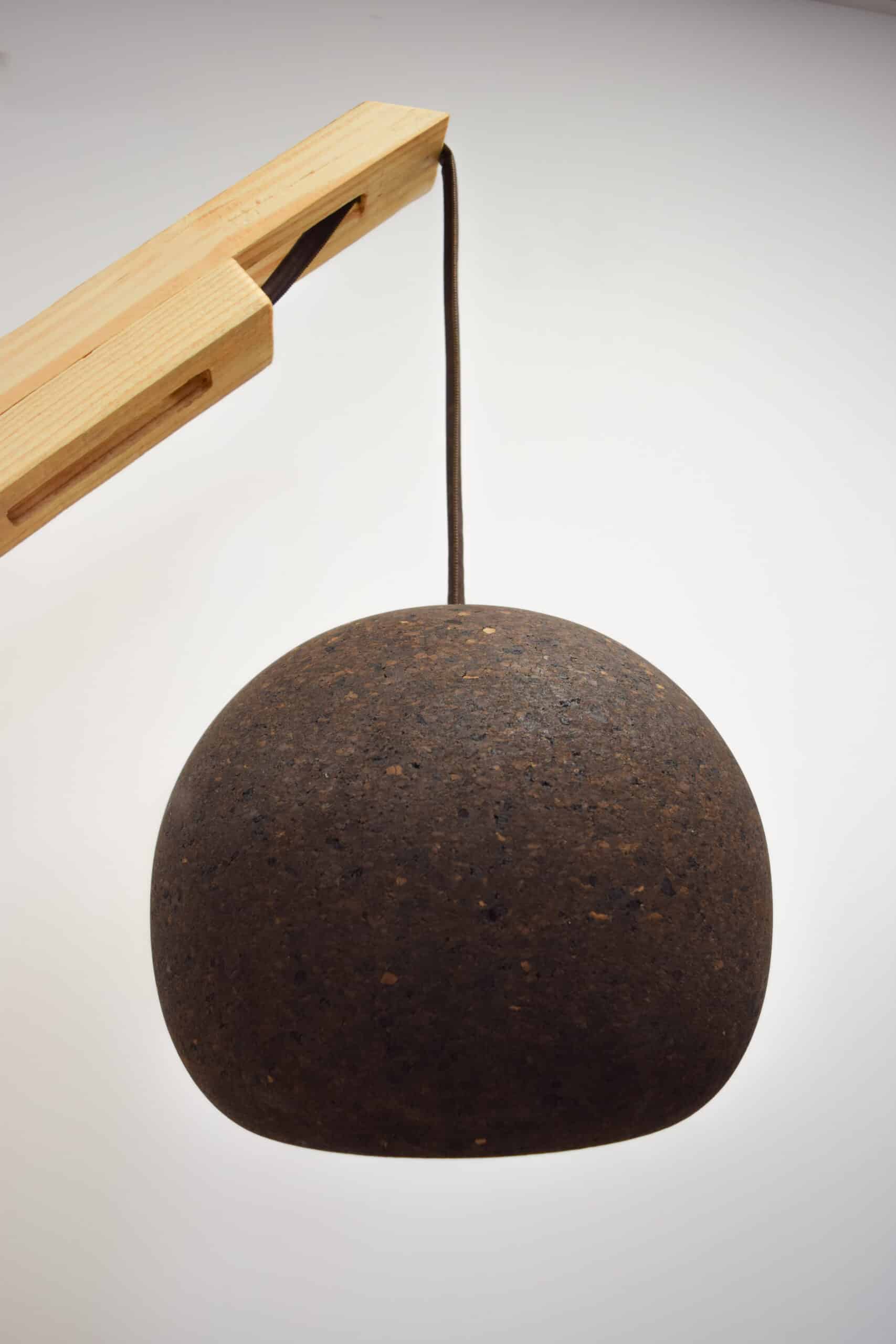 Le Halo se distingue par sa versatilité : on peut le suspendre, le poser, le monter sur support. Il diffuse une lumière douce à travers la texture du liège, créant une atmosphère intimiste et naturelle.
